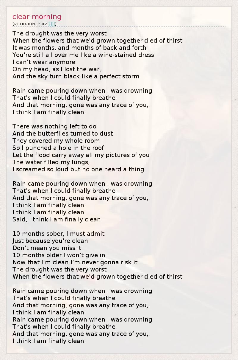 А как ты думаешь, о чем песня "clear morning" ?