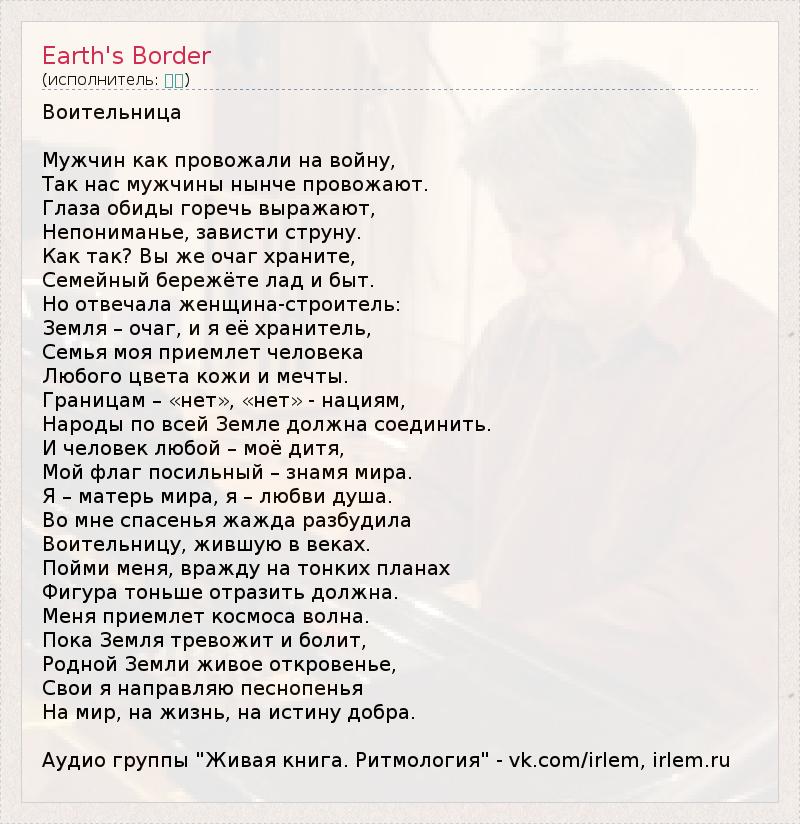 А как ты думаешь, о чем песня "Earth's Border" ?