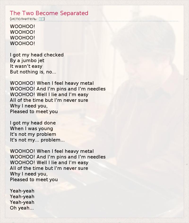 А как ты думаешь, о чем песня "The Two Become Separated" ?