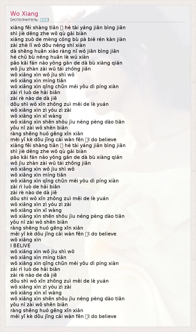 А как ты думаешь, о чем песня "Wo Xiang" ?