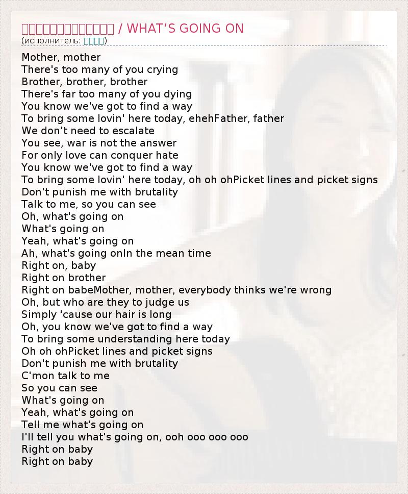 А как ты думаешь, о чем песня "ホワッツ・ゴーイング・オン / WHAT’S GOING ON" ?