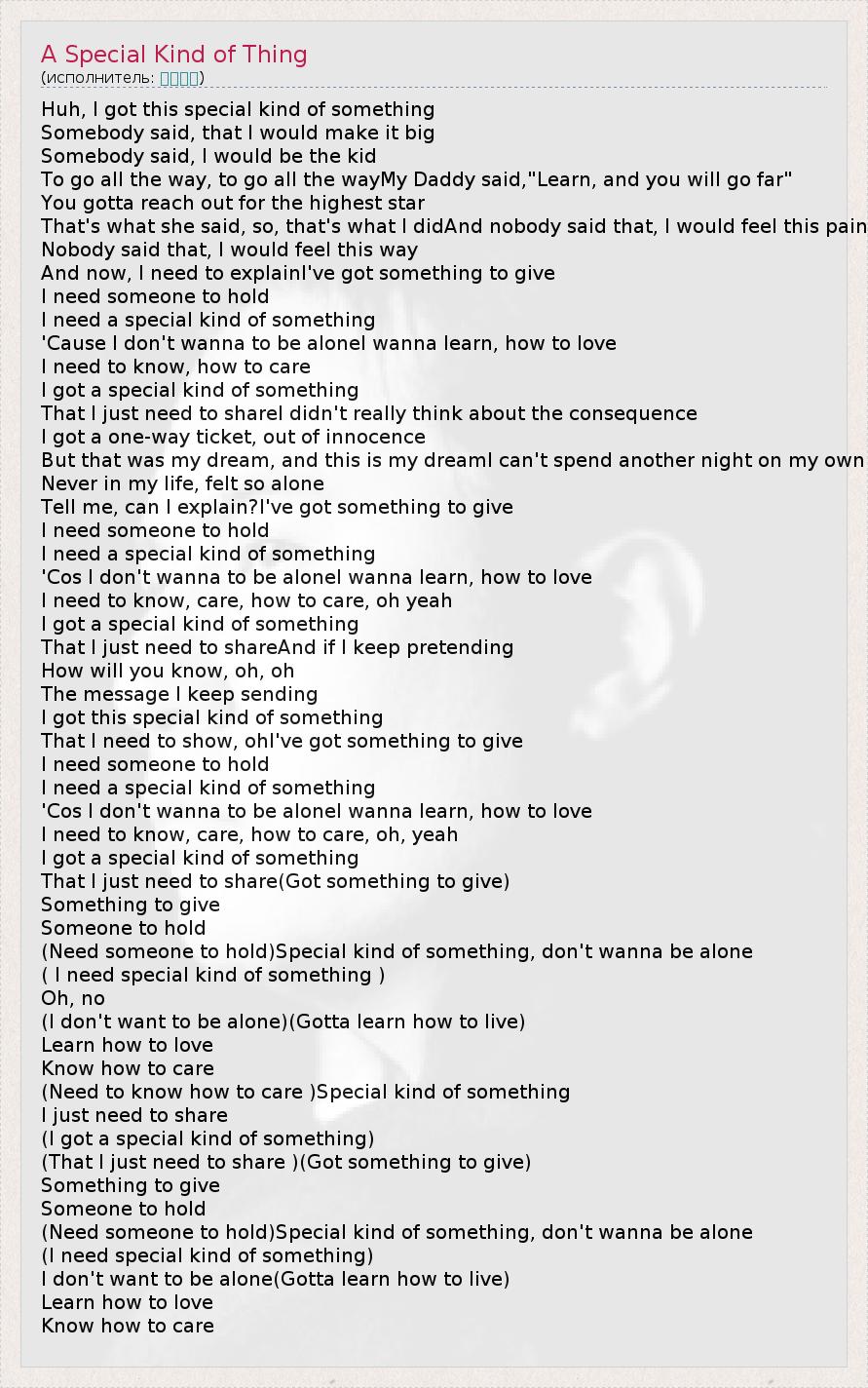 А как ты думаешь, о чем песня "A Special Kind of Thing" ?