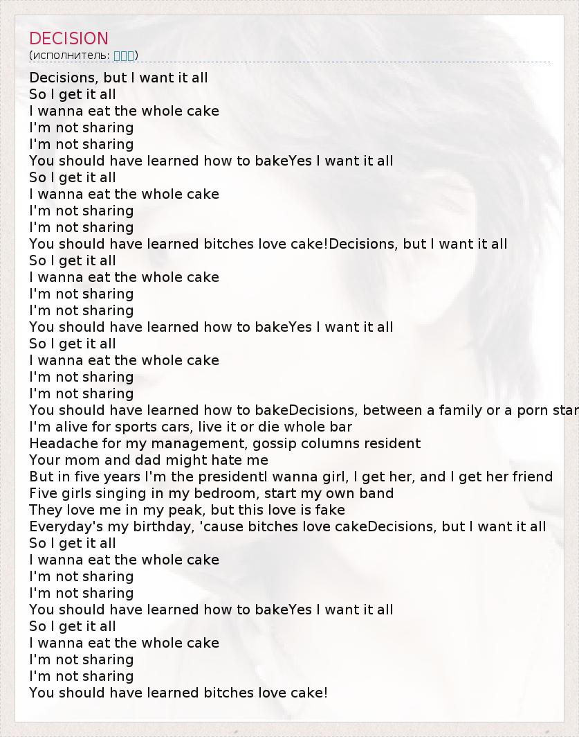 Everyday's my birthday, 'cause bitches love cakeDecisions, but I want it all