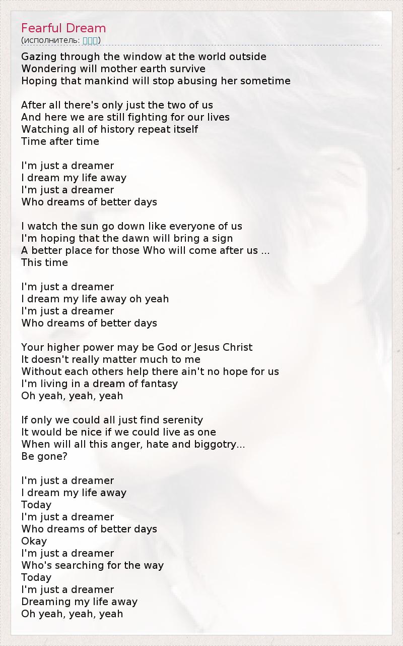 А как ты думаешь, о чем песня "Fearful Dream" ?