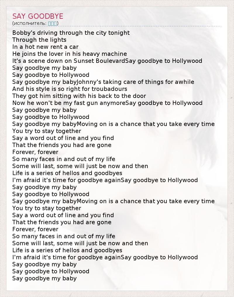 I'm afraid it's time for goodbye againSay goodbye to Hollywood
