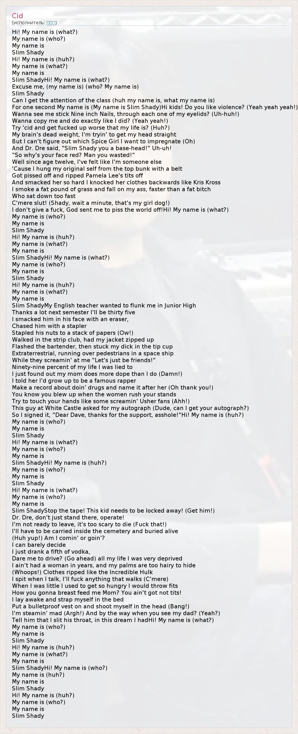 Slim ShadyMy English teacher wanted to flunk me in Junior High