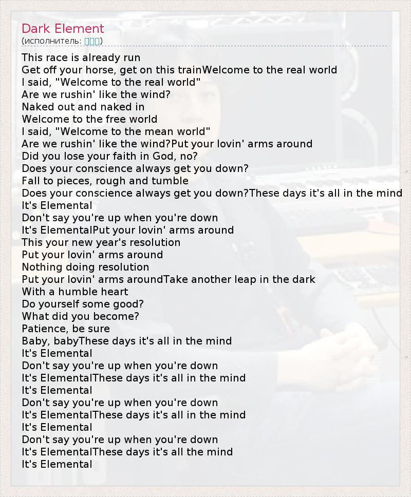 А как ты думаешь, о чем песня "Dark Element" ?