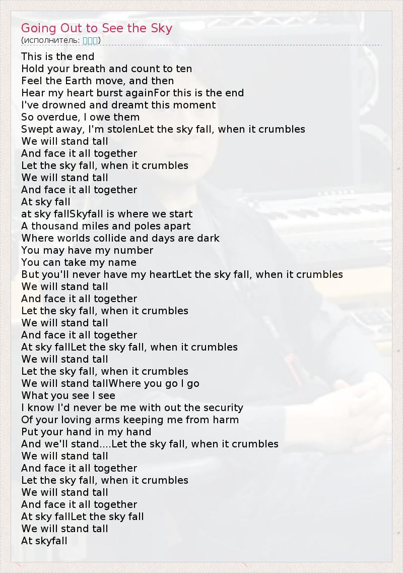 А как ты думаешь, о чем песня "Going Out to See the Sky" ?