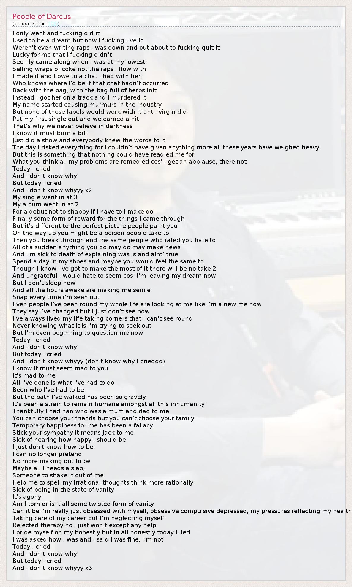 А как ты думаешь, о чем песня "People of Darcus" ?