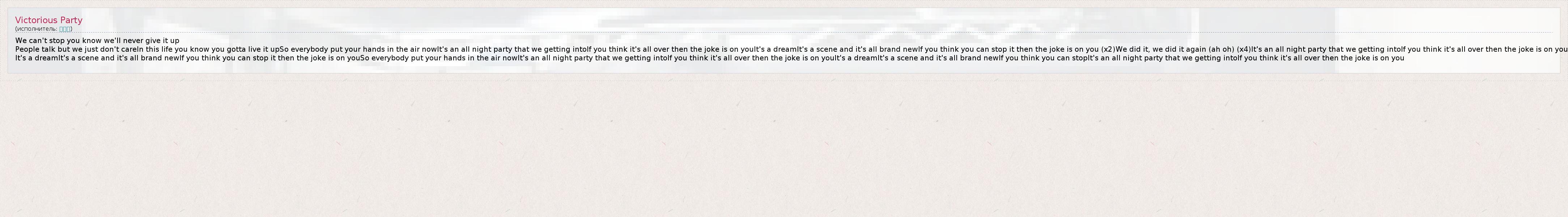 А как ты думаешь, о чем песня "Victorious Party" ?