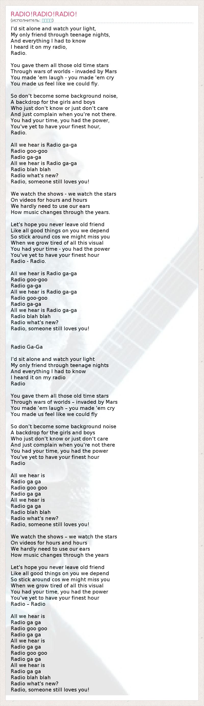 А как ты думаешь, о чем песня "RADIO!RADIO!RADIO!" ?