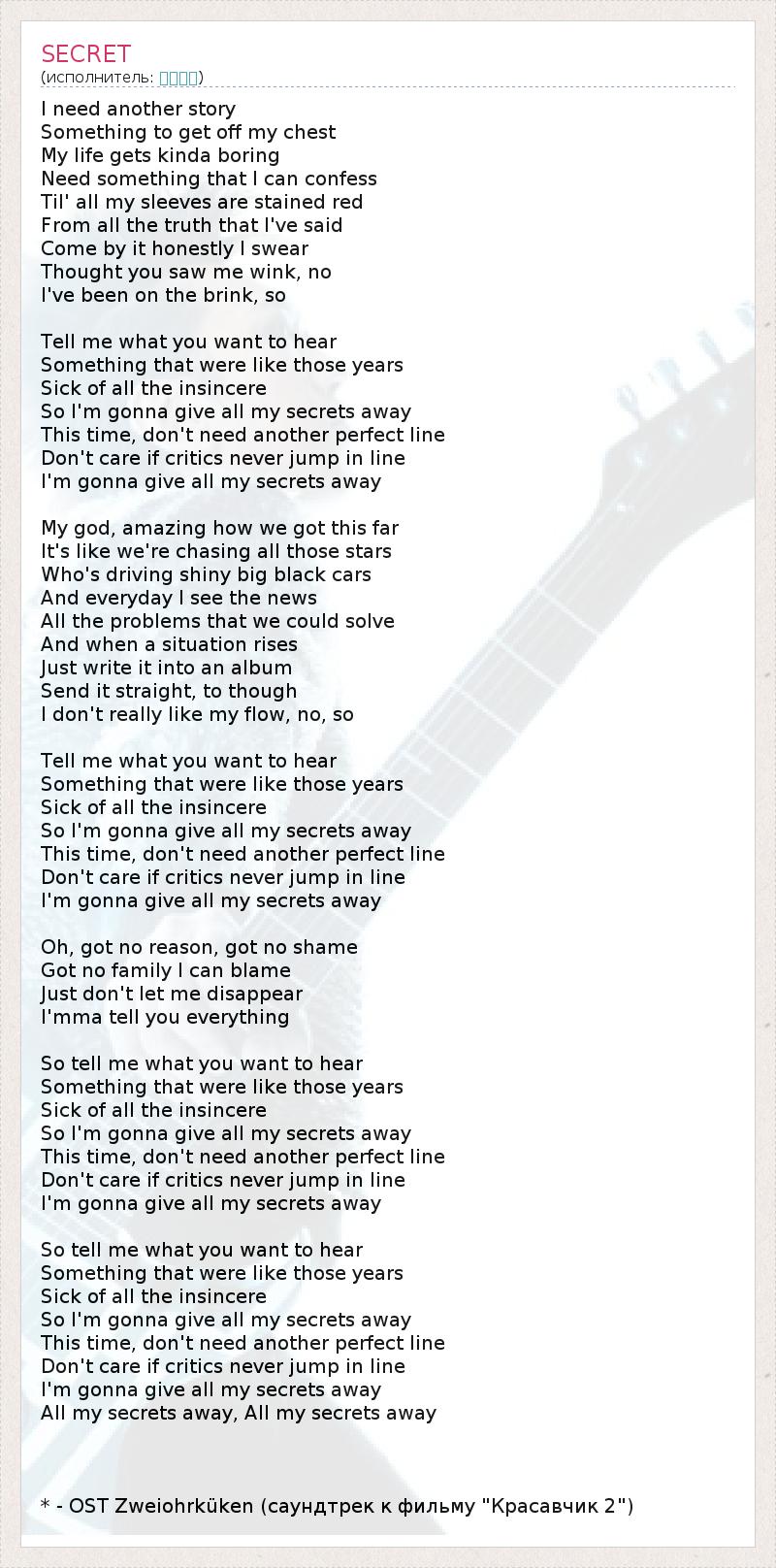 All my secrets away, All my secrets away