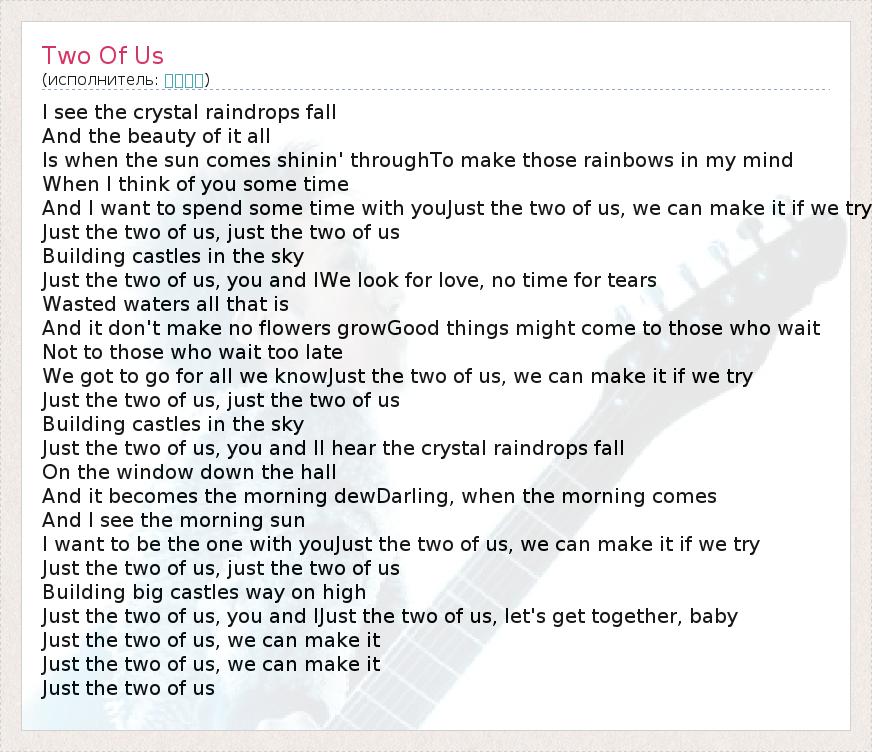 Just the two of us, you and IJust the two of us, let's get together, baby