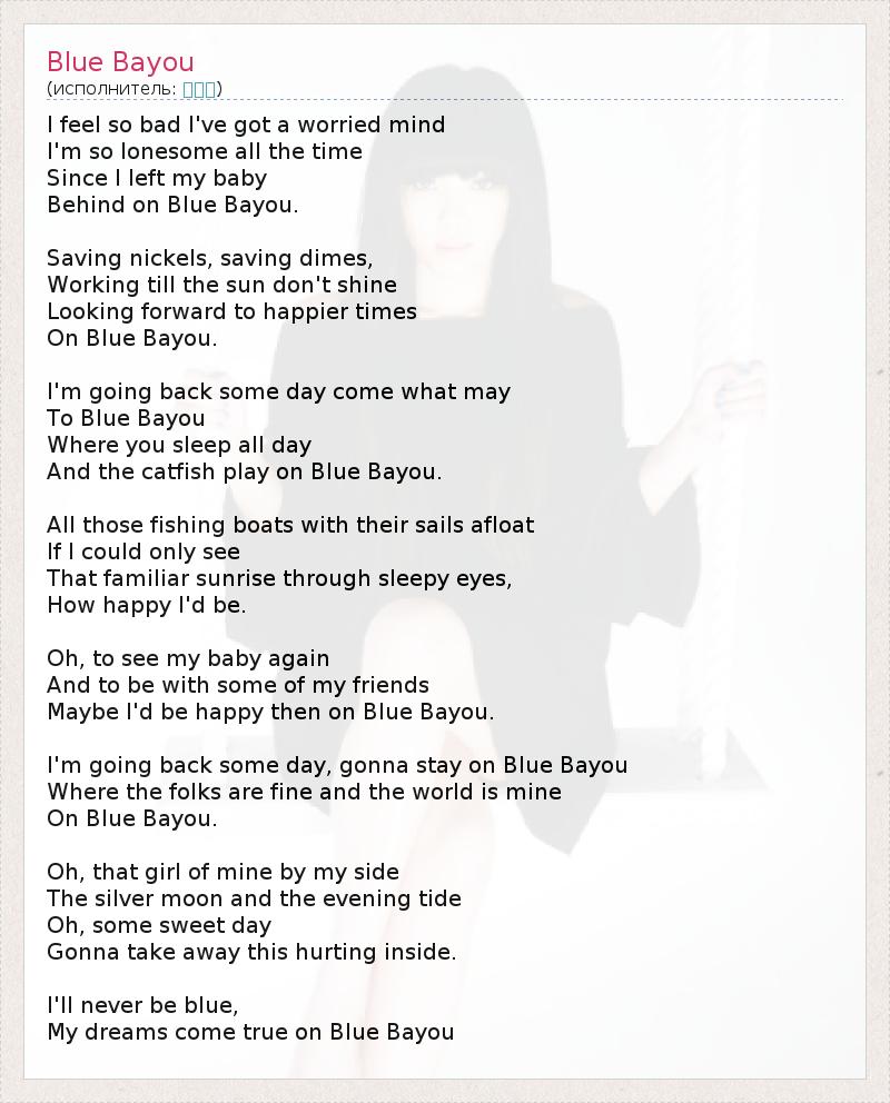 А как ты думаешь, о чем песня "Blue Bayou" ?