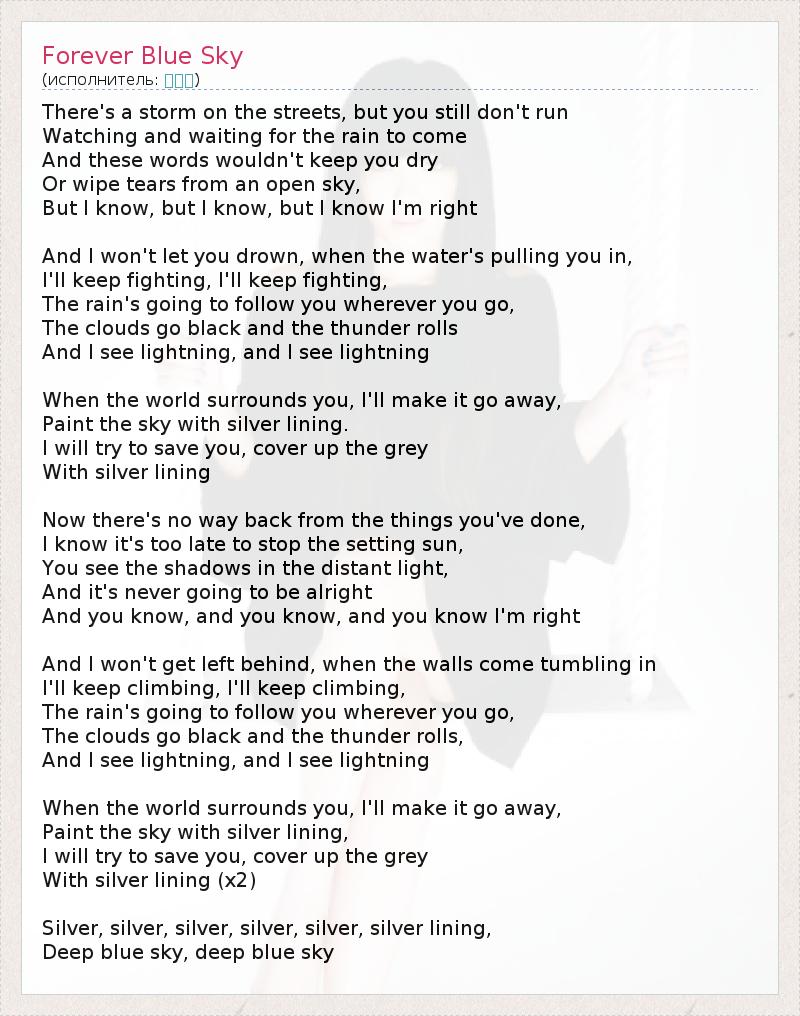 А как ты думаешь, о чем песня "Forever Blue Sky" ?