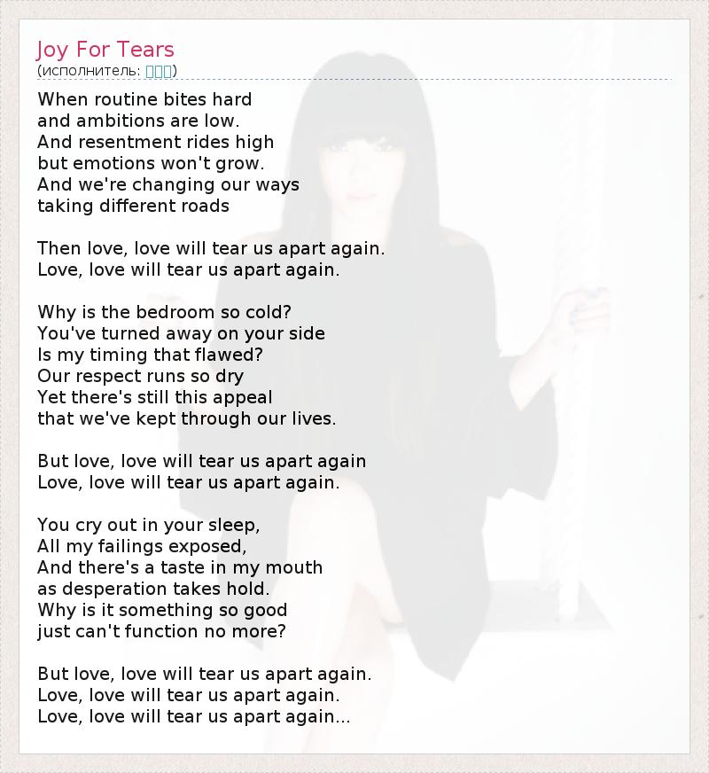 А как ты думаешь, о чем песня "Joy For Tears" ?