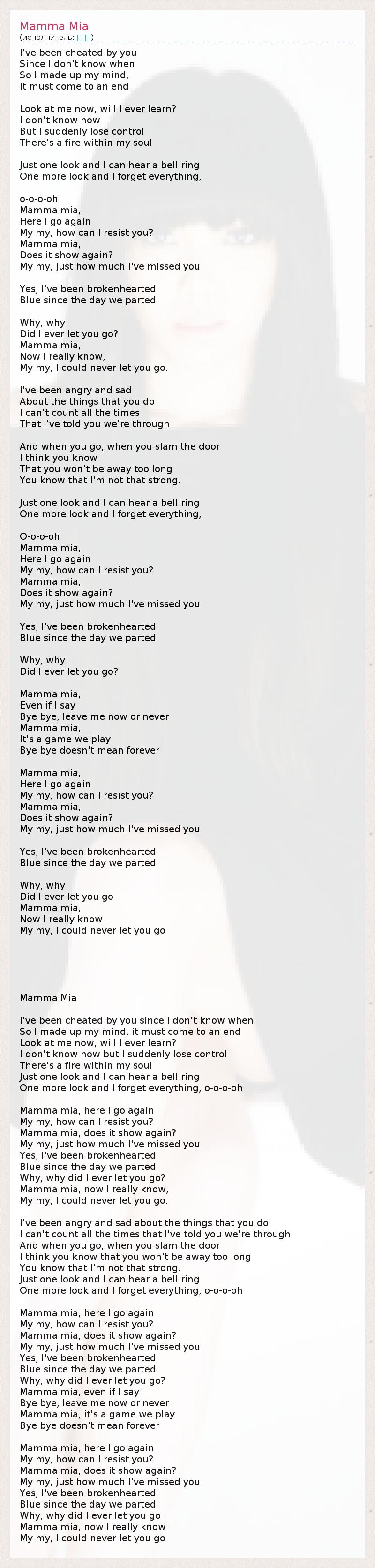А как ты думаешь, о чем песня "Mamma Mia" ?