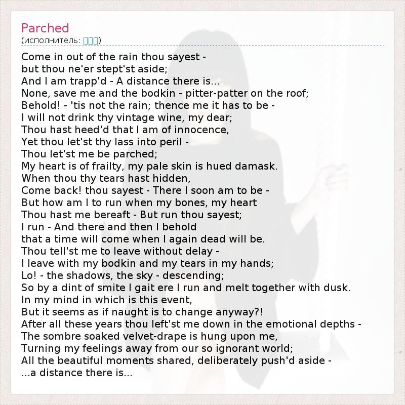 А как ты думаешь, о чем песня "Parched" ?