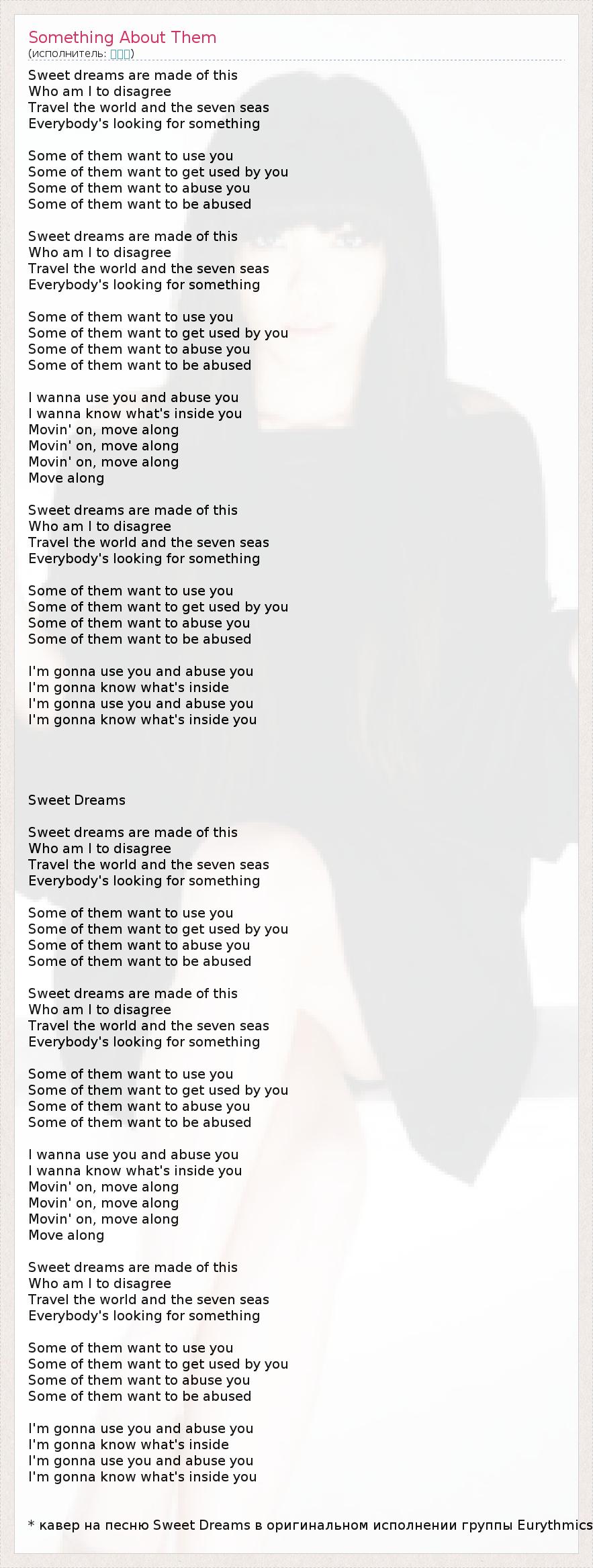 * кавер на песню Sweet Dreams в оригинальном исполнении группы Eurythmics