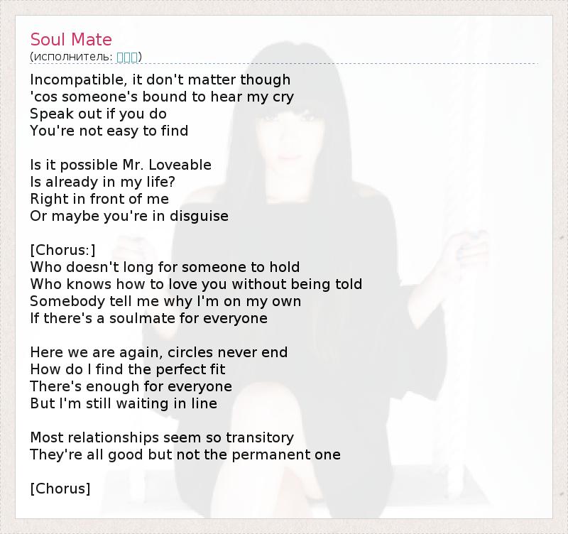 А как ты думаешь, о чем песня "Soul Mate" ?