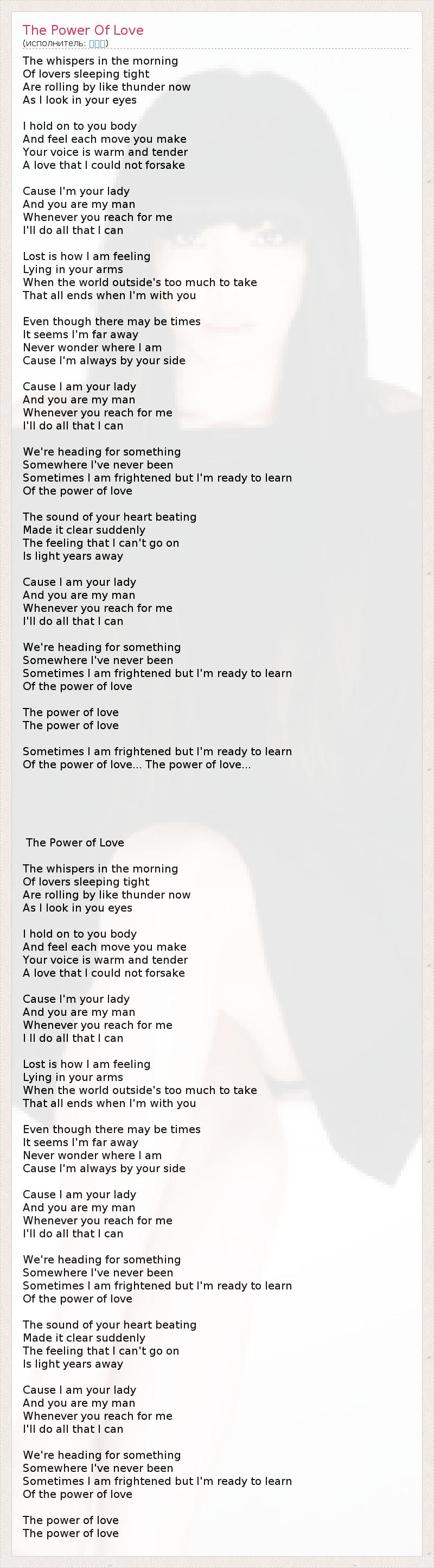 А как ты думаешь, о чем песня "The Power Of Love" ?
