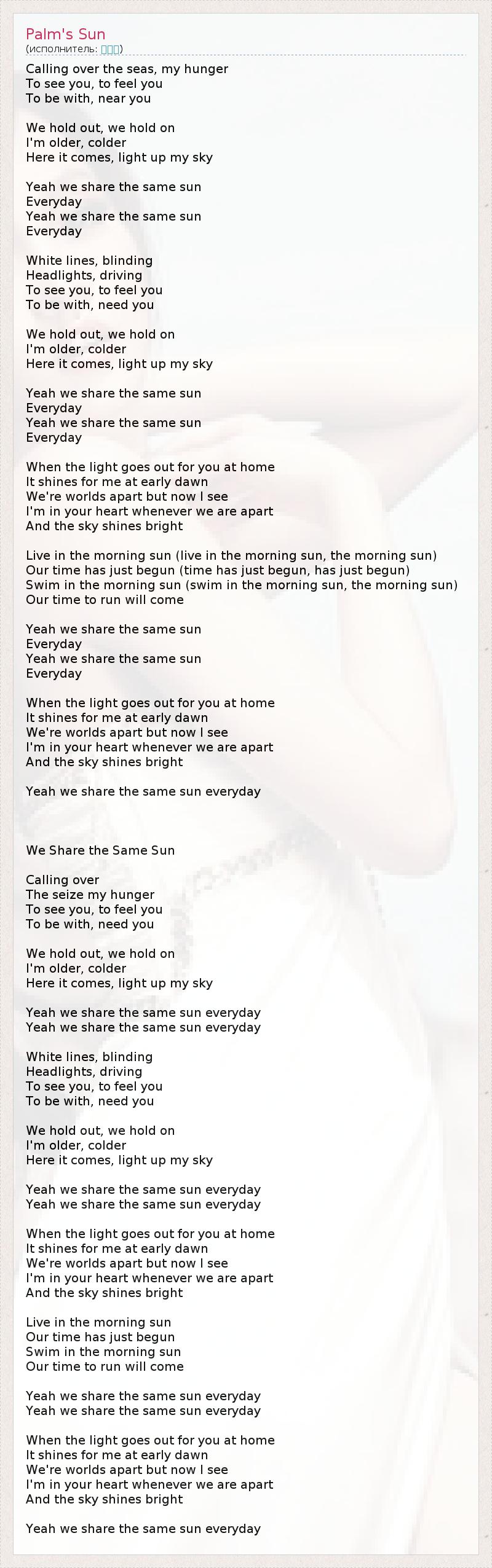 А как ты думаешь, о чем песня "Palm's Sun" ?