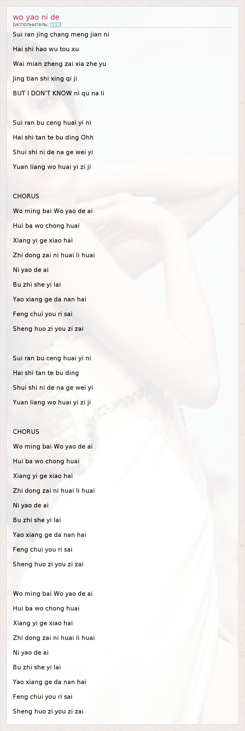 А как ты думаешь, о чем песня "wo yao ni de" ?