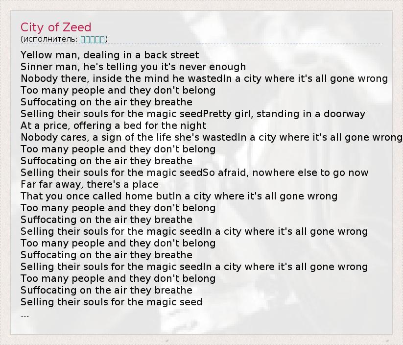 А как ты думаешь, о чем песня "City of Zeed" ?