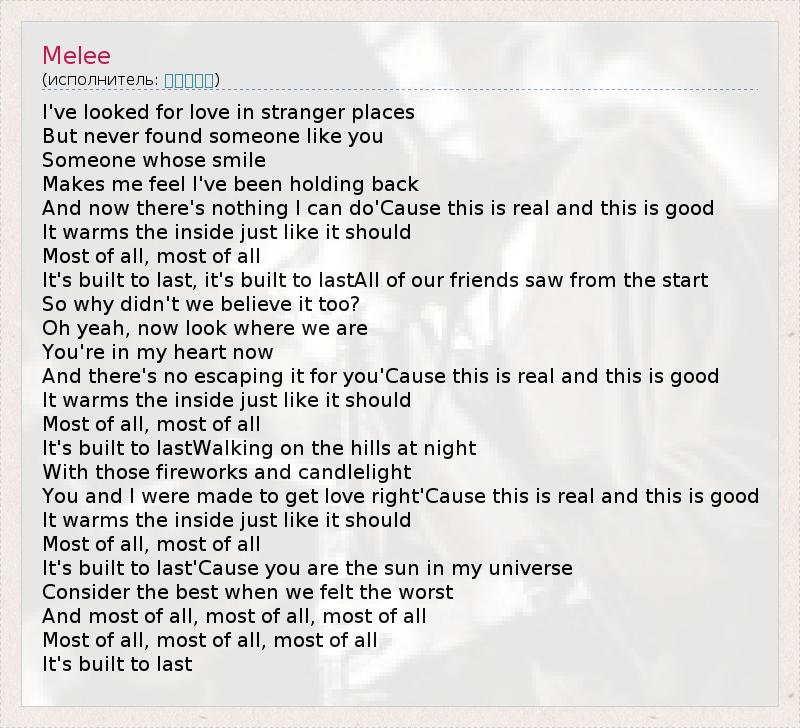 А как ты думаешь, о чем песня "Melee" ?