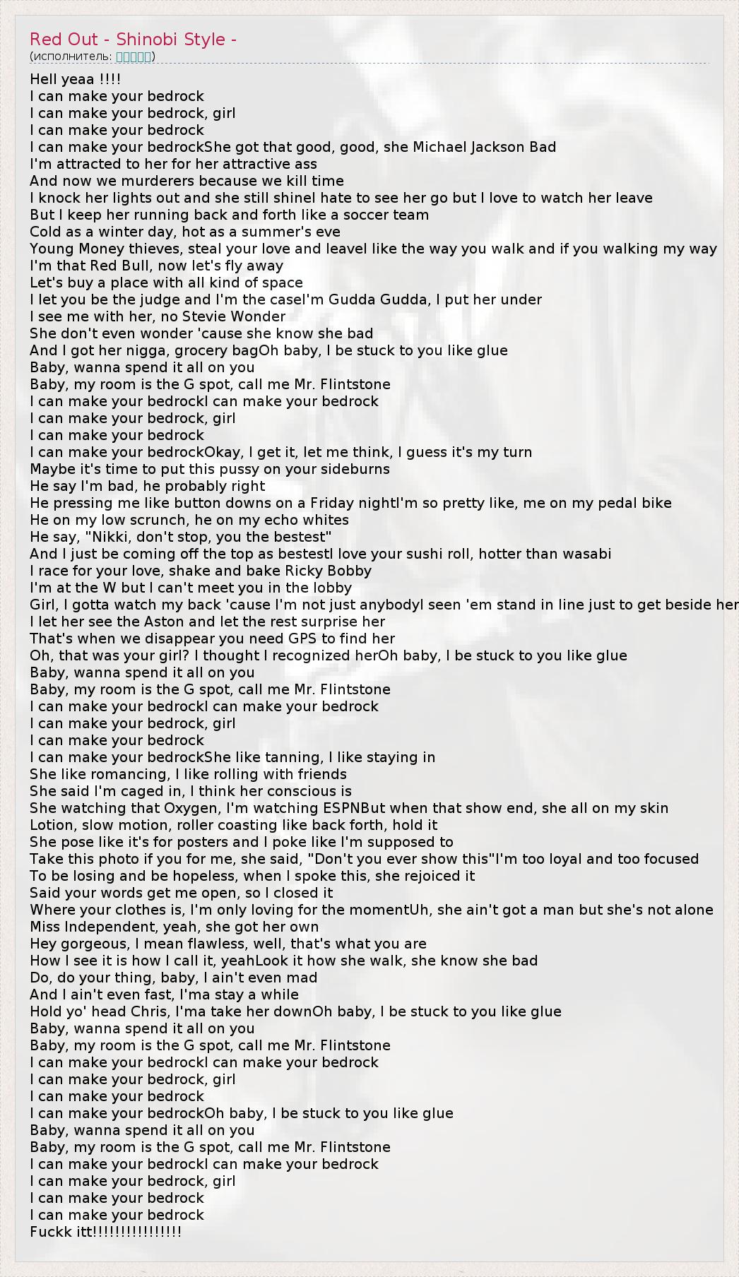 А как ты думаешь, о чем песня "Red Out - Shinobi Style -" ?