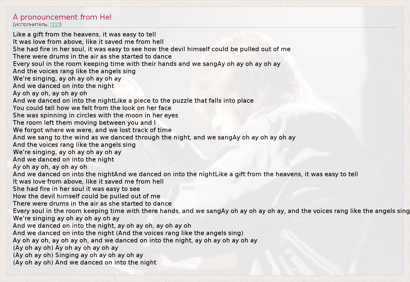 And we danced on into the night, ay oh ay oh, ay oh ay oh