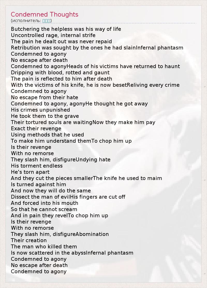 А как ты думаешь, о чем песня "Condemned Thoughts" ?