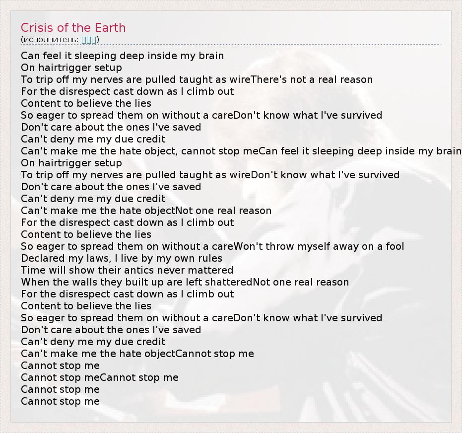 А как ты думаешь, о чем песня "Crisis of the Earth" ?