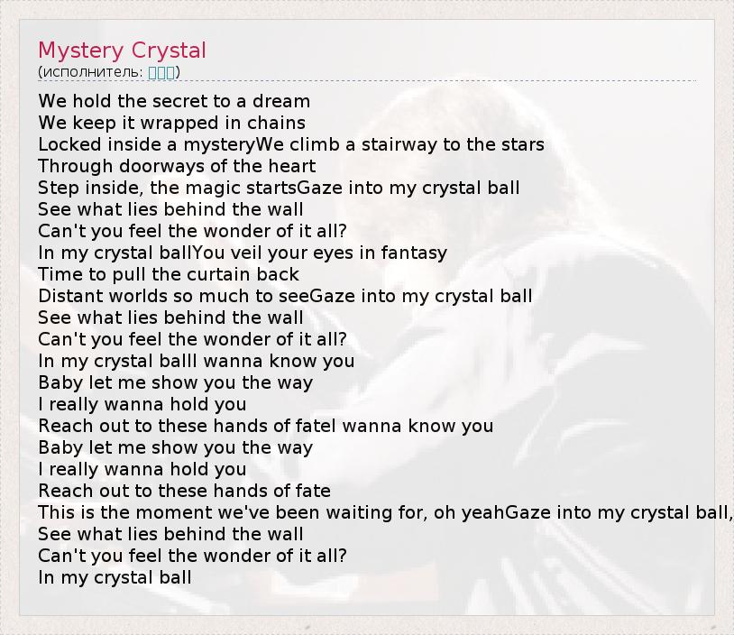 А как ты думаешь, о чем песня "Mystery Crystal" ?