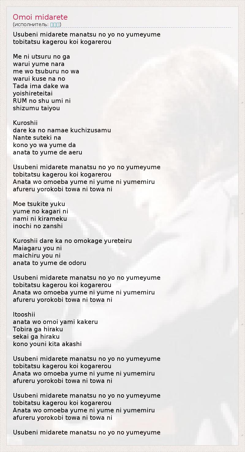 А как ты думаешь, о чем песня "Omoi midarete" ?