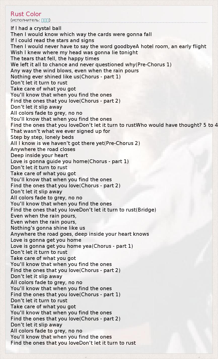Find the ones that you loveDon't let it turn to rust(Bridge)