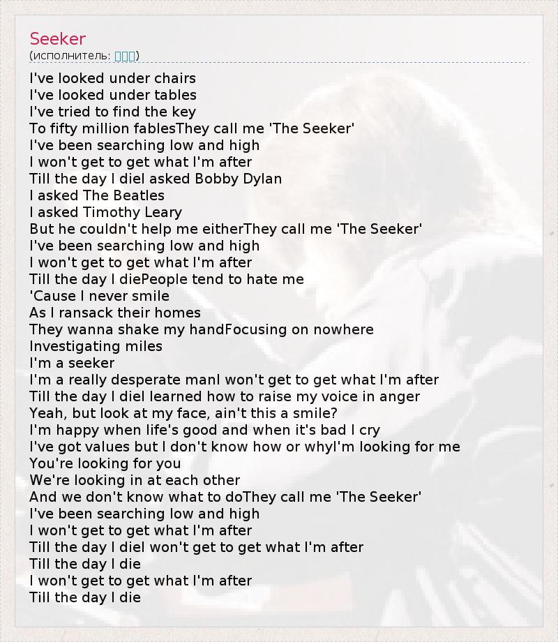 А как ты думаешь, о чем песня "Seeker" ?