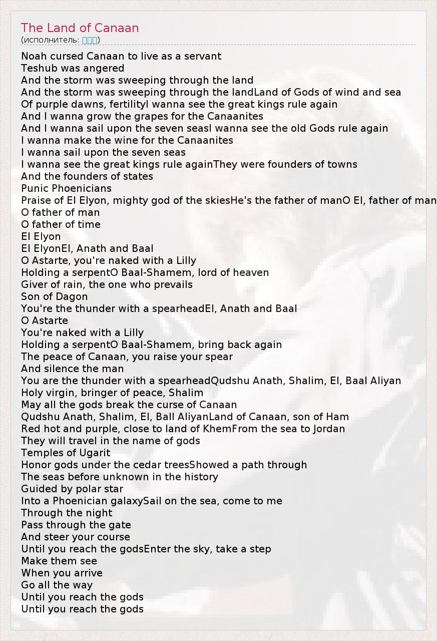 А как ты думаешь, о чем песня "The Land of Canaan" ?