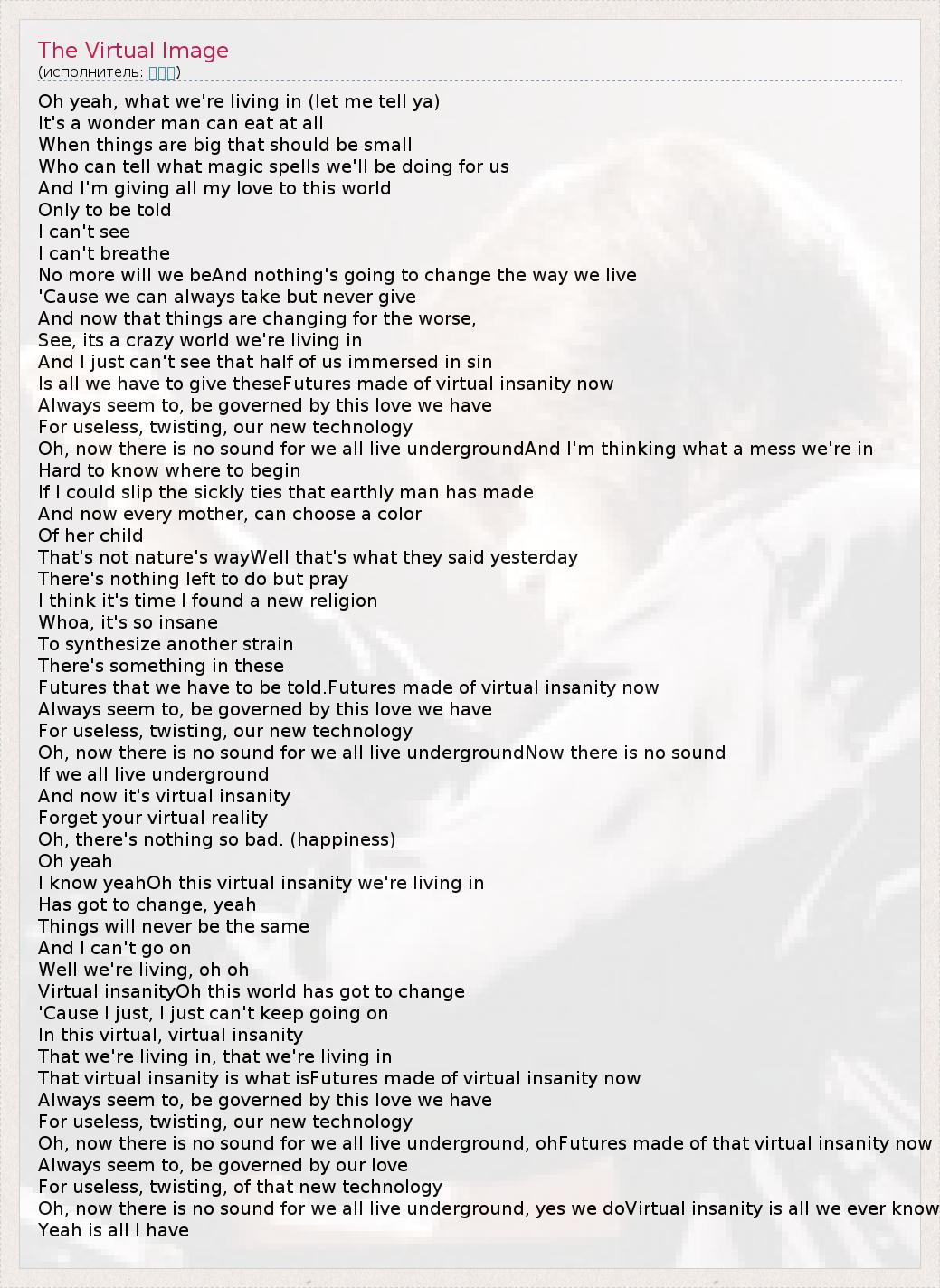 А как ты думаешь, о чем песня "The Virtual Image" ?