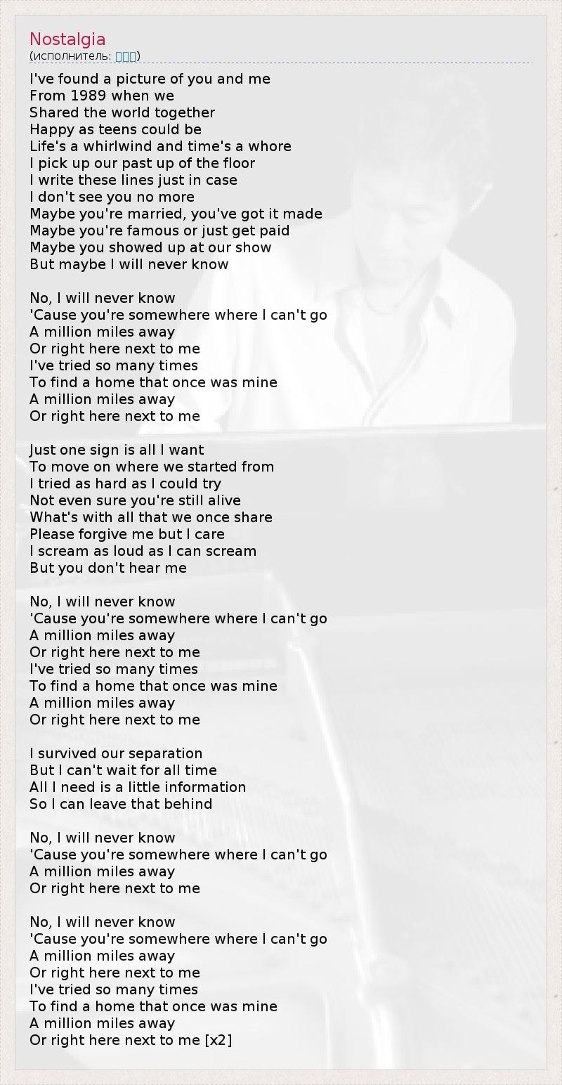 А как ты думаешь, о чем песня "Nostalgia" ?