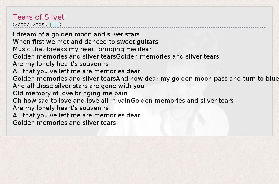 Golden memories and silver tearsAnd now dear my golden moon pass and turn to blue