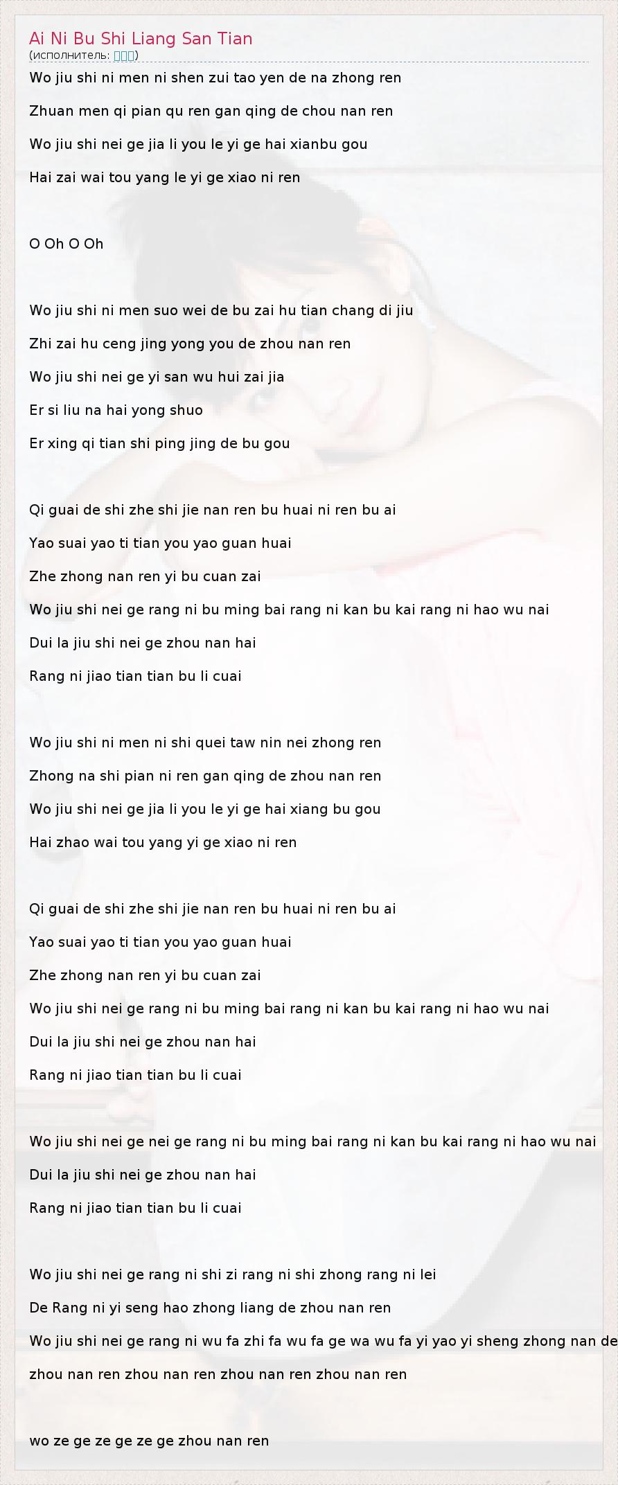 А как ты думаешь, о чем песня "Ai Ni Bu Shi Liang San Tian" ?