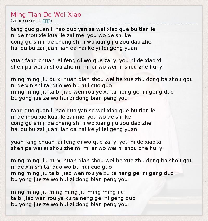 А как ты думаешь, о чем песня "Ming Tian De Wei Xiao" ?