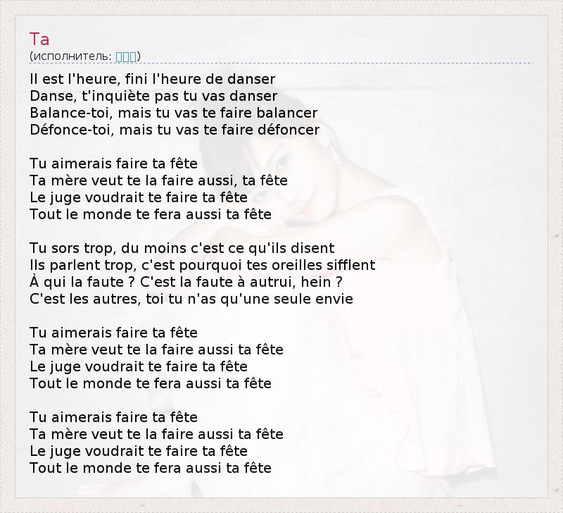 А как ты думаешь, о чем песня "Ta" ?