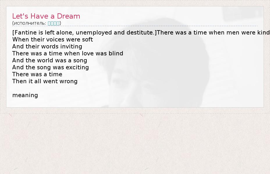 А как ты думаешь, о чем песня "Let's Have a Dream" ?