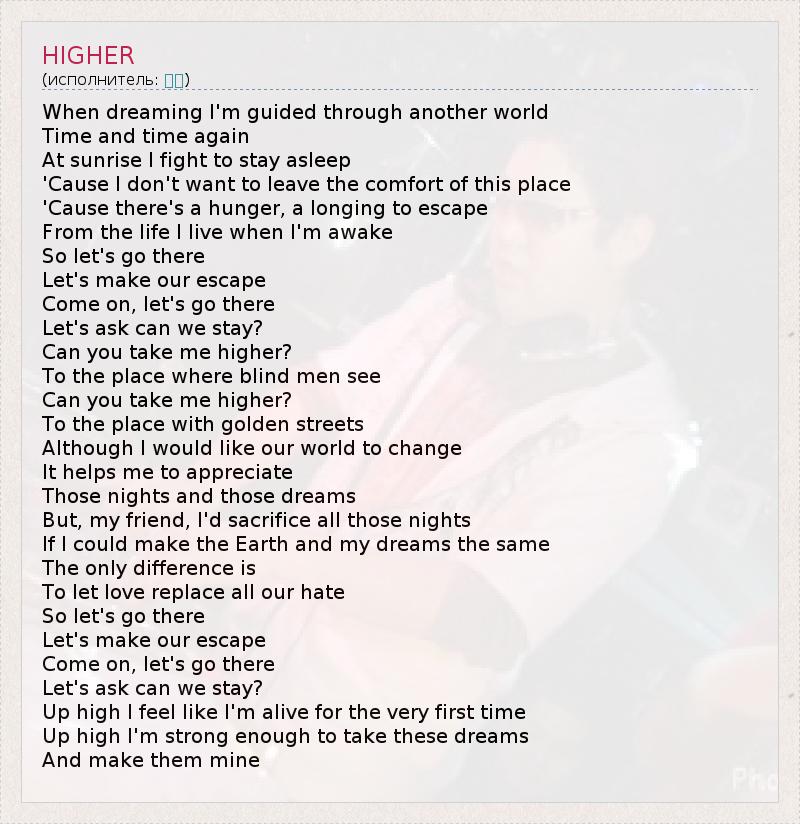 А как ты думаешь, о чем песня "HIGHER" ?