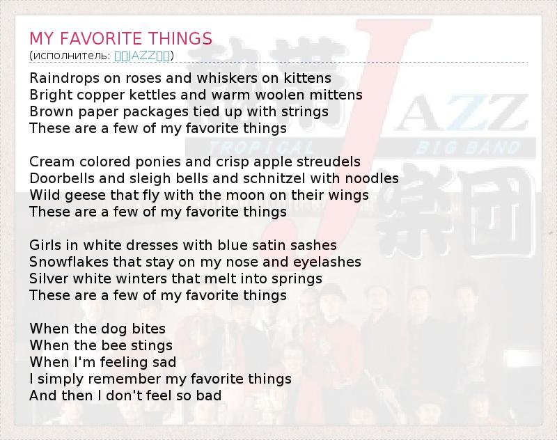 А как ты думаешь, о чем песня "MY FAVORITE THINGS" ?