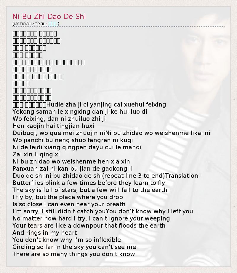 Duo de shi ni bu zhidao de shi(repeat line 3 to end)Translation:
