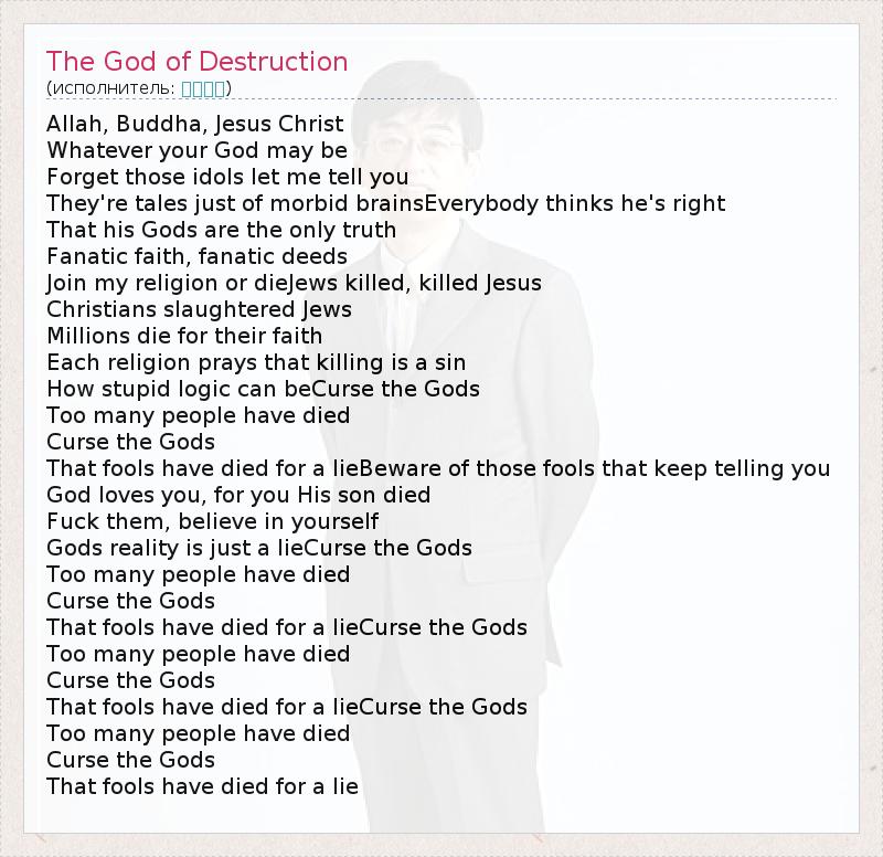 А как ты думаешь, о чем песня "The God of Destruction" ?