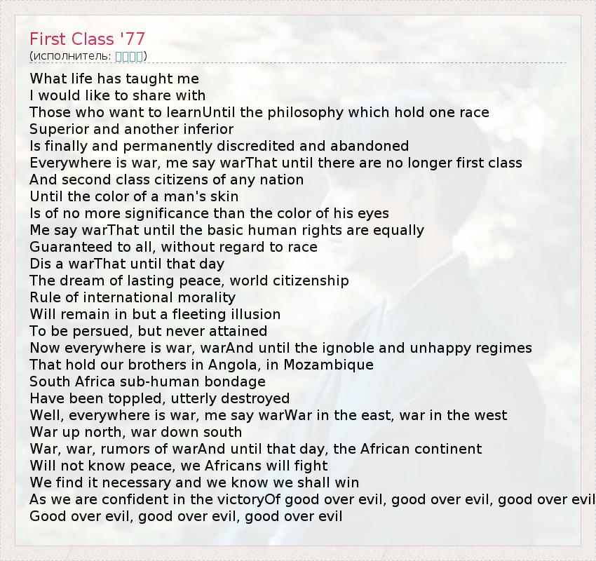 Everywhere is war, me say warThat until there are no longer first class